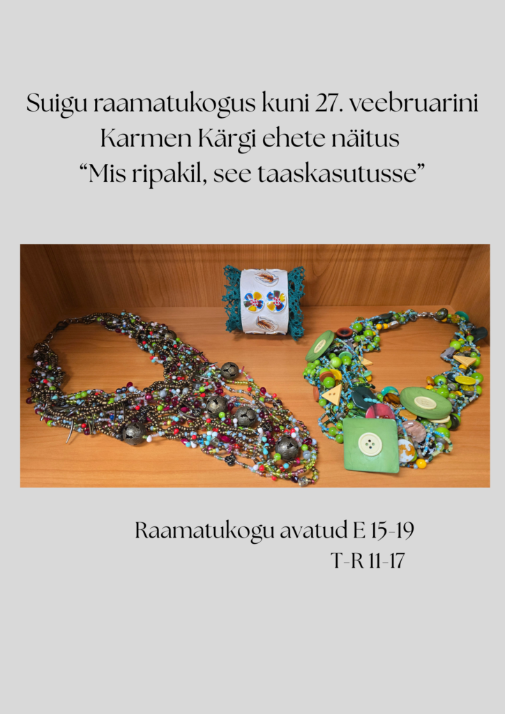 Karmen Kärgi ehete näitus Suigu raamatukogus on avatud 27. veebruarini
