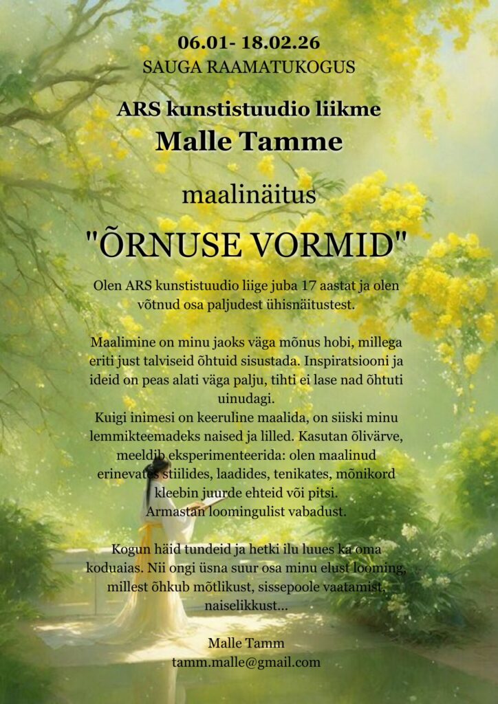 Malle Tamme maalinäitus Sauga raamatukogus on avatud 18. veebruarini